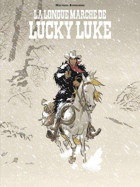 Déjà installé avec succès dans le territoire de Lucky Luke, Matthieu Bonhomme renouvelle le genre en jouant avec les personnages bien connus de la série (ainsi qu’à d’autres issus de l’actualité !) tout en montant encore d’un cran sa virtuosité graphique.