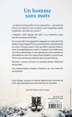 « Je dois à Lorenzo d’être en vie aujourd’hui » : ces mots de Primo Levi, dans Si c’est un homme, sont longtemps restés mystérieux. Qui était ce Lorenzo ? L’historien Carlo Greppi est parti à sa recherche, sans sacrifier la rigueur à l’émotion. Pour la première fois apparaît le visage de ce Juste parmi les Nations, qui protégea Primo Levi à Auschwitz, sans demande de retour. Émerge aussi un lien qui défia la grande Histoire, entre un analphabète et un lettré, un maçon et un intellectuel, tous deux piémontais, et unis à jamais par cette expérience d’humanité au sein d’un camp d’extermination. Au point que Primo Levi nomma ses enfants Lisa Lorenza et Renzo… Pourtant, Lorenzo et Primo ne sortirent jamais réellement d’Auschwitz. Une bouleversante enquête d’historien sur une fraternité de l’extrême