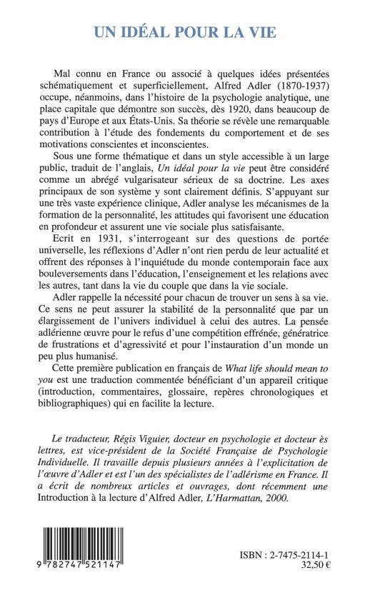 Mal connu en France, Alfred Adler occupe néanmoins une place capitale dans l'histoire de la psychologie analytique. Son ouvrage, ici traduit pour la première fois en français peut être considéré comme un abrégé vulgarisateur et sérieux de sa doctrine. S'appuyant sur une vaste expérience clinique, Adler analyse les mécanismes de la formation de la personnalité, les attitudes qui favorisent une éducation en profondeur et assurent une vie sociale plus satisfaisante.