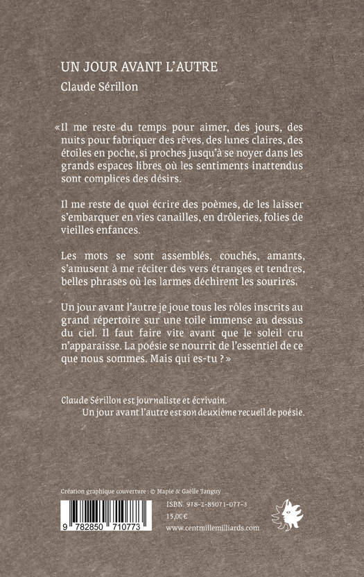 Un jour avant l’autre je joue tous les rôles inscrits au grand répertoire sur une toile immense au dessus du ciel. Il faut faire vite avant que le soleil cru n’apparaisse. La poésie se nourrit de l’essentiel de ce que nous sommes. Mais qui es-tu ?  »