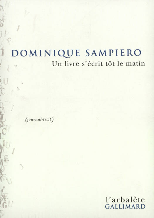 "Un journal ne sert à rien. Il s'agit de l'écrire une fois. Et c'est pour toute une vie. Une seule année suffit. On tombe ensuite dans le cliché, le pléonasme. La redondance de soi. On s'enferme, on se singe. Je retrouve mes larmes comme mes propres enfants, le plus fragile de moi-même ne m'effraie plus, au contraire, je me laisse envahir, et la pluie, au-dedans comme au-dehors, lave ce que je ne sais ni de moi ni du monde, et qui me brûlait le coeur." Dominique Sampiero.