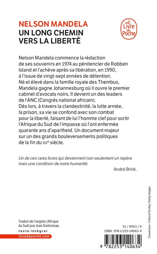 Commencés en 1974 au pénitencier de Robben Island, ces souvenirs furent achevés par Nelson Mandela après sa libération, en 1990, à l'issue de vingt-sept années de détention. Rarement une destinée individuelle se sera aussi étroitement confondue avec le combat d'un peuple et le devenir d'une nation. Né et élevé à la campagne, dans la famille royale des Thembus, Nelson Mandela gagne Johannesburg où il va ouvrir le premier cabinet d'avocats noirs et devenir un des leaders de l'ANC. Dès lors, à travers la clandestinité, la lutte armée, la prison, sa vie se confond plus que jamais avec son combat pour la liberté, lui conférant peu à peu une dimension mythique, faisant de lui l'homme clef pour sortir son pays, l'Afrique du Sud, de l'impasse où l'ont enfermé quarante ans d'apartheid. Document majeur sur un des grands bouleversements de la fin du xxe siècle, ce livre est aussi le témoignage d'un combat exemplaire pour la dignité humaine.