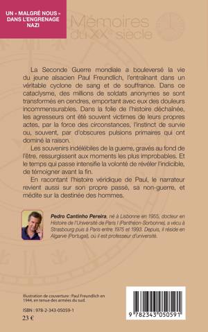 Ce livre constitue un humble hommage aux Alsaciens et Mosellans incorporés de force dans les armées allemandes lors de la Seconde Guerre mondiale et qui vivent dans l'ambiguïté de leur destin. Dans ce cataclysme, les agresseurs ont souvent été victimes de leurs propres actes. En racontant l'histoire vraie de Paul Freundlich, jeune alsacien dont la vie a été bouleversée par la Seconde Guerre mondiale, le narrateur revient sur son propre passé.