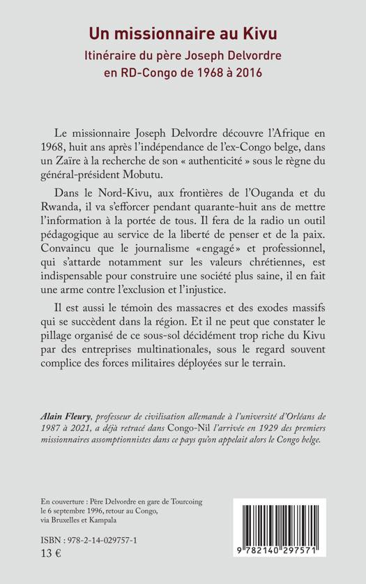 Le missionnaire Joseph Delvordre découvre l'Afrique en 1968, huit ans après l'indépendance de l'ex-Congo belge, dans un Zaïre à la recherche de son « authenticité » sous le règne du général-président Mobutu Dans le Nord-Kivu, aux frontières de l'Ouganda et du Rwanda, il va s'efforcer pendant quarante-huit ans de mettre l'information à la portée de tous.Il est aussi le témoin des massacres et des exodes massifs qui se succèdent dans la région. Et il ne peut que constater le pillage organisé de ce sous-sol décidément trop riche du Kivu par des entreprises multinationales, sous le regard souvent complice des forces militaires déployées sur le terrain.