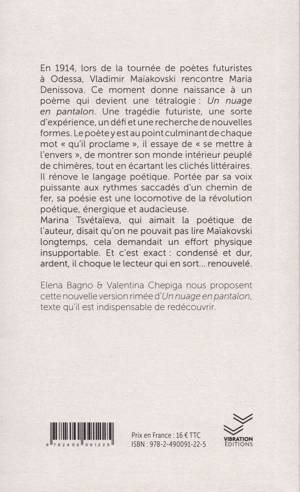 poésie bilingue RU-FR «À bas votre amour!À bas votre art! À bas votre système ! À bas votre religion ! » Quatre cris des quatre parties du poème. Métaphorique, agressif et profondément humaniste. En 1915, Un Nuage sera censuré. L’amour y déchire la grisaille du quotidien. Maïakovski, en treizième apôtre, nous appelle à nous défaire d’une vie privée de couleurs.
