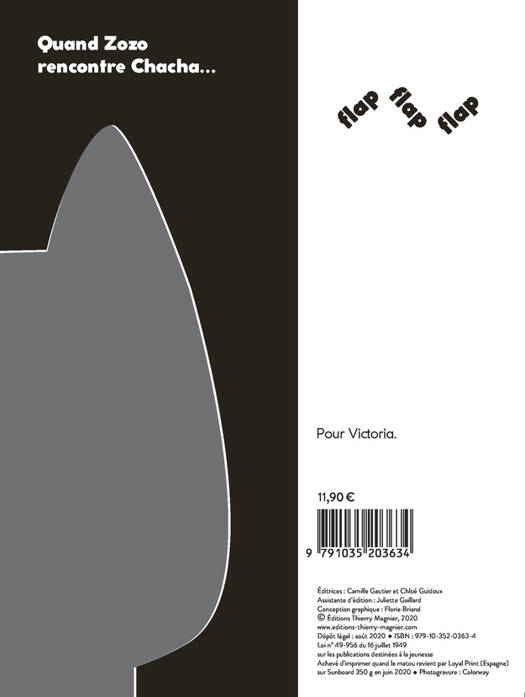 «Cui cui !» Zozo est un tout petit oiseau. «Miaou ! »Chacha, lui, est un gros gras chat gris. Mais quand Zozo l'oiseau rencontre Chacha le chat, que se passe-t-il ? «Niac» ! «Flap flap flap...»