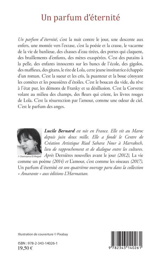Un parfum d'éternité, c'est la nuit contre le jour, une descente aux enfers, une montée vers l'extase, c'est la poésie et la crasse, le vacarme de la vie de banlieue, des chasses d'eau tirées, des portes qui claquent. C'est des putains à la pelle, des enfants innocents sur les bancs de l'école, des gigolos, des maffieux, des gitans, le rire de Lola, cette jeune institutrice échappée d'un roman. C'est le boucan du vide, du rêve à l'état pur, les démons de Franky et sa désillusion. C'est la résurrection par l'amour, comme une odeur de ciel. C'est le parfum des anges.