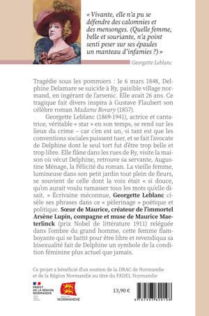 Tragédie sous les pommiers : le 6 mars 1848, Delphine Delamare se suicide à Ry, paisible village normand, en ingérant de l'arsenic. Elle avait 26 ans. Déçue par son mariage, déçue par ses amants, criblée de dettes, elle laisse une petite fille et un époux inconsolable. Ce tragique fait divers qui défraya la chronique inspira à Gustave Flaubert son célèbre roman Madame Bovary (1857). Georgette Leblanc (1869-1941), actrice et cantatrice, véritable « star » en son temps, se rend sur les lieux du crime - car c'en est un, si tant est que les conventions sociales puissent tuer, et se fait l'avocate de Delphine dont le seul tort fut d'être trop belle et trop libre. Elle flâne dans les rues de Ry, visite la maison où vécut Delphine, retrouve sa servante, Augustine Ménage, la Félicité du roman. La vieille femme, lumineuse dans son petit jardin tout plein de fleurs, se souvient de celle dont la voix était « si douce, qu’on aurait voulu ramasser tous les mots qu’elle disait. » Écrivaine méconnue, Georgette Leblanc cisèle ses phrases dans ce « pèlerinage » poétique et politique. Soeur de Maurice, créateur de l'immortel Arsène Lupin, compagne et muse de Maurice Maeterlinck (prix Nobel de littérature 1911) reléguée dans l'ombre du grand homme, cette femme flamboyante qui se battit pour être libre et revendiqua sa bisexualité fait de Delphine un symbole de la condition féminine plus actuel que jamais.