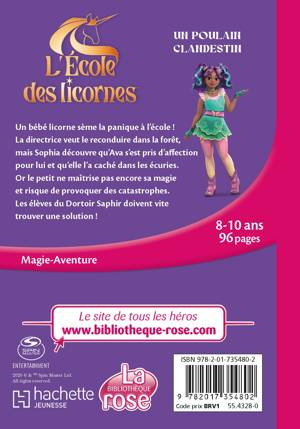 Un bébé licorne sème la panique à l’école ! La directrice veut le reconduire dans la forêt, mais Sophia découvre qu’Ava s’est prise d’affection pour lui et qu’elle l’a caché dans les écuries. Or le petit ne maîtrise pas encore sa magie et risque de provoquer des catastrophes. Les élèves du Dortoir Saphir doivent vite trouver une solution !