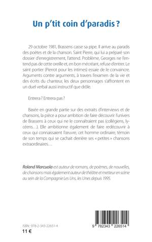 29 octobre 1981, Brassens casse sa pipe. Il arrive au paradis des poètes et de la chanson. Saint Pierre, qui lui a préparé son dossier d’enregistrement, l’attend. Problème, Georges ne l’entend pas de cette oreille et, en bon mécréant, refuse d’entrer. Le saint portier (Pierrot pour les intimes) essaie de le convaincre. Arguments contre arguments, à travers l’examen de la vie et des écrits du chanteur, les deux personnages s’affrontent en un duel verbal aussi instructif que drôle. Entrera ? Entrera pas ? Basée en grande partie sur des extraits d’interviews et de chansons, la pièce a pour ambition de faire découvrir l’univers de Brassens à ceux qui ne le connaîtraient pas (collégiens, lycéens...). Elle ambitionne également de faire redécouvrir à ceux qui connaissaient l’œuvre, cet homme ordinaire, témoin de son temps qui se cachait derrière ses « petites » chansons extraordinaires...