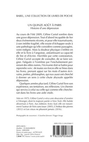 En 2009, Céline Curiol se trouve confrontée à l'étrange sensation d'avoir perdu le goût de vivre, celui de penser, d'imaginer. De ne plus pouvoir réagir. Agir sur son propre corps, le maîtriser. Quelques années plus tard, elle tente de dire et de comprendre comment s'est insinuée en elle cette extrême fragilité physique et psychologique dont elle revisite les strates, désireuse de circonscrire les symptômes de cette maladie appelée dépression, en parler, la nommer ; tant la solitude et le déni qui à l'époque l'entouraient jusqu'à la submerger auraient pu la tuer.