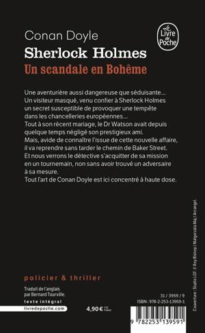 Une aventurière aussi dangereuse que séduisante... Un visiteur masqué, venu confier à Sherlock Holmes un secret susceptible de provoquer une tempète dans les chancelleries européennes... Tout à son récent mariage, le Dr Watson avait depuis quelque temps négligé son prestigieux ami. Mais, avide de connaître l'issue de cette nouvelle affaire, il va reprendre sans tarder le chemin de Baker Street. Et nous verrons le détective s'acquitter de sa mission en un tournemain, non sans avoir trouvé un adversaire à sa mesure. Tout l'art de Conan Doyle est ici concentré à haute dose.