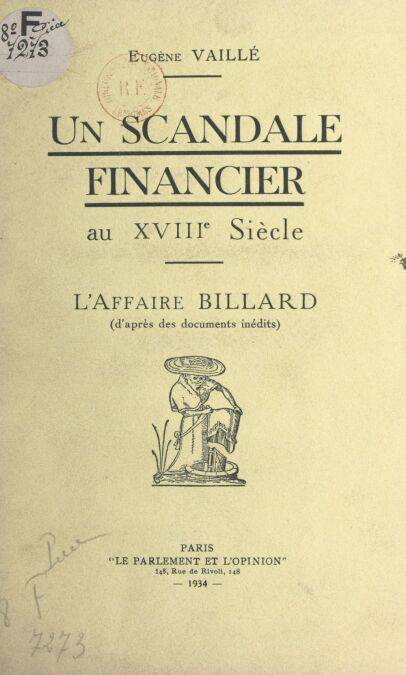 3. Un scandale financier au XVIIIe siècle : l'affaire Billard (d'après des documents inédits)