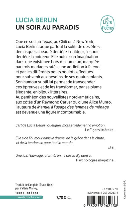 Que ce soit au Texas, au Chili, ou à New York, Lucia Berlin traque partout la solitude des êtres, démasque la beauté derrière la laideur, l'espoir derrière la noirceur. Elle puise son imagination dans une existence hors du commun, marquée par trois mariages ratés, une addiction à l'alcool et par les différents petits boulots effectués pour subvenir aux besoins de ses quatre enfants. Son humour subtil lui permet de transcender ces épreuves et de les transformer, par sa plume élégante, en bijoux littéraires.