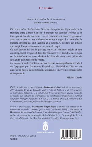 Où nous mène Rafael-José Diaz en évoquant ce léger voile à la frontière entre la mort et la vie ? Sûrement pas dans les tréfonds de la terre, plutôt dans la tombe de l’air où l’aventure est encore vigoureuse avec ses rencontres, ses mélancolies et ses virages. Le poète tâte la matière sensible qui unit l’éclipse et le souffle. C’est dans cet espace que surgit l’inspiration comme un animal traqué. Ce qui étonne ici est le passage entre un réalisme précis et son enveloppement progressif dans les flous de l’être. Lucidité acérée qui sur le tranchant des mots devient le chant du vécu entre bribes de souvenirs et expansion du regard. Un suaire est un livre intense de bout en bout, remarquablement traduit de l’espagnol par Bernadette Engel-Roux. Rafael-José Diaz est au cœur de la poésie contemporaine espagnole, une voix reconnaissable et surprenante. Michel Cassir