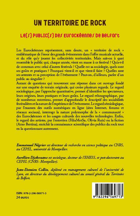Les Eurockéennes représentent, sans doute, un "territoire de rock" emblématique de l'essor des grands événements dans l'offre musicale actuelle. Mais sait-on à quoi ressemble le public ? Qu'a-t-il de commun avec celui d'autres festivals ? Quelle est sa sociologie ? Quelles sont ses attentes et sa perception de l'évènement ? Peut-on parler d'un public au singulier ? Autant de questions qui trouveront une réponse dans cet ouvrage fondé sur une enquête de terrain originale.