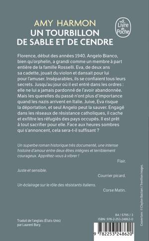Florence, début des années 1940. Angelo Bianco, bien qu’orphelin, a grandi comme un membre à part entière de la famille Rosselli. Eva, de deux ans sa cadette, jouait du violon et dansait pour lui pour l’amuser. Inséparables, ils se confiaient tous leurs secrets. Jusqu’au jour où il est entré dans les ordres : elle ne lui a jamais pardonné de l’avoir abandonnée. Mais les querelles du passé n’ont plus d’importance quand les nazis arrivent en Italie. Juive, Eva risque la déportation, et seul Angelo peut la sauver. Engagé dans les réseaux de résistance catholiques, il cache et exfiltre les réfugiés des pays occupés. Il est prêt à tout sacrifier pour elle. Face aux heures sombres qui s’annoncent, cela sera-til suffisant ?