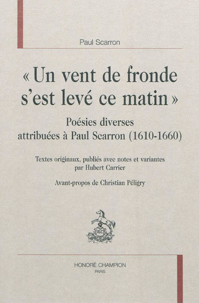 Cette édition des poésies publiées par Scarron de 1649 à 1652 constitue