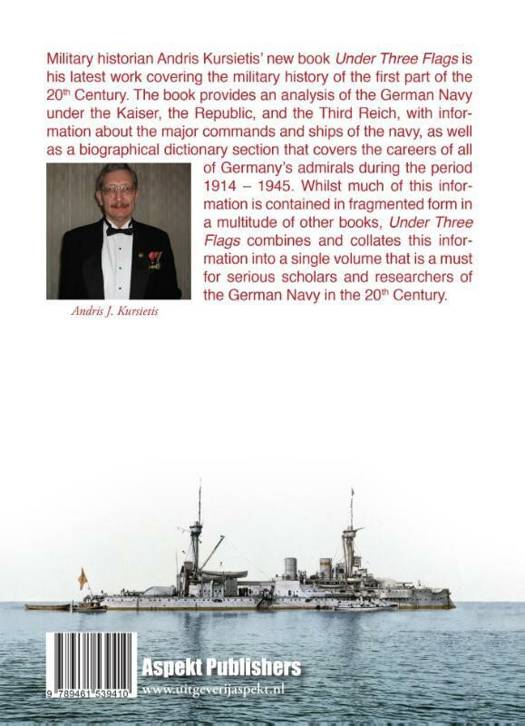 Military historian Andris Kursietis' new book Under Three Flags is his latest work covering the military history of the first part of the 20th Century. The book provides an analysis of the German Navy under the Kaiser, the Republic, and the Third Reich, with information about the major commands and ships of the navy, as well as a biographical dictionary section that covers the careers of all of Germany's admirals during the period 1914 - 1945. Whilst much of this information is contained in fragmented form in a multitude of other books, Under Three Flags combines and collates this information into a single volume that is a must for serious scholars and researchers of the German Navy in the 20th Century.