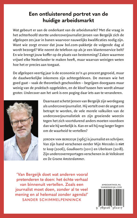 Wat gebeurt er aan de onderkant van de arbeidsmarkt? Met die vraag in het achterhoofd stortte undercoverjournalist Jeroen van Bergeijk zich de afgelopen zes jaar in banen waarvoor nauwelijks kwalificaties nodig zijn. Want wie zorgt ervoor dat jouw bol.com-pakketje de volgende dag al wordt bezorgd? Wie neemt de telefoon op als je een klantenservice belt? En wie brengt jouw koffer op de plaats van bestemming? Zaken waarmee vrijwel elke Nederlander te maken heeft, maar waarvan weinigen weten hoe het er precies aan toegaat.