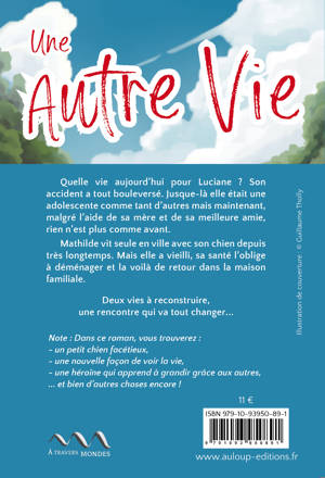Quelle vie aujourd'hui pour Luciane ? Son accident a tout bouleversé. Jusque-là elle était une adolescente comme tant d'autres mais maintenant, malgré l'aide de sa mère et de sa meilleure amie, rien n'est plus comme avant. Mathilde vit seule en ville avec son chien depuis très longtemps. Mais elle a vieilli, sa santé l'oblige à déménager et la voilà de retour dans la maison familiale. Deux vies à reconstruire, une rencontre qui va tout changer... Note : Dans ce roman, vous trouverez : - un petit chien facétieux, - une nouvelle façon de voir la vie, - une héroïne qui apprend à grandir grâce aux autres, ... et bien d'autres choses encore !