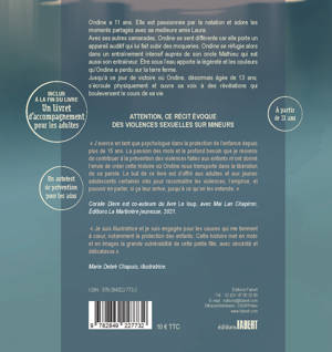 Ondine a 11 ans. Elle est passionnée par la natation et adore les moments partagés avec sa meilleure amie Laura. Avec ses autres camarades, Ondine se sent différente car elle porte un appareil auditif qui lui fait subir des moqueries. Ondine se réfugie alors dans un entraînement intensif auprès de son oncle Mathieu qui est aussi son entraîneur. Être sous l’eau apporte la légèreté et les couleurs qu’Ondine a perdu sur la terre ferme. Jusqu’à ce jour de victoire où Ondine, désormais âgée de 13 ans, s’écroule physiquement et ouvre sa voix à des révélations qui bouleversent le cours de sa vie. ATTENTION, CE RÉCIT ÉVOQUE DES VIOLENCES SEXUELLES SUR MINEURS Coralie DIERE « J’exerce en tant que psychologue dans la protection de l’enfance depuis plus de15 ans. La passion des mots et le profond besoin que je ressens de contribuer à la prévention des violences faites aux enfants m’ont donné l’envie de créer cette histoireoù Ondine nous transporte dans la libération de sa parole. Le but de ce livre est d’offrir aux adultes et aux jeunes adolescents certaines clés pour reconnaître les violences, l’emprise et pouvoir en parler, si ça leur arrive, jusqu’à ce qu’on les entende. » Marie DEBRÉ CHAPUIS « Je suis illustratrice et je suis engagée pour les causes qui me tiennent à coeur, notamment la protection des enfants. Cette histoire met en mots et en images la grande vulnérabiltié de cette petite fille, avec sincérité et délicatesse. »