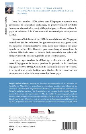 Dans les années 1970, alors que l’Espagne entamait son processus de transition politique, le gouvernement d’Adolfo Suárez se donnait deux objectifs principaux : démocratiser le pays et adhérer à la Communauté économique européenne (CEE). Déposée officiellement en 1977, la candidature de l’Espagne mettait en jeu les relations des gouvernements espagnols avec les instances communautaires mais aussi avec chacun des pays membres de la CEE. Dans ce processus long et complexe, la relation bilatérale avec la France était essentielle en raison de l’importance du dossier agricole pour les deux pays. Cet ouvrage analyse le débat agricole, souvent difficile, entre l’Espagne et la France pendant la période de la transition espagnole (1975-1982). Conduit de façon minutieuse et vivante, il se veut une contribution aux études de la construction européenne et des relations entre les deux pays.