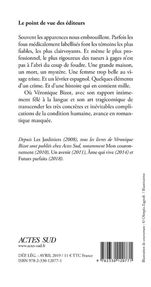 Souvent les apparences nous embrouillent. Parfois les fous médicalement labellisés font les témoins les plus fiables, les plus clairvoyants. Et même le plus professionnel, le plus rigoureux des tueurs à gages n'est pas à l'abri du coup de foudre. Une grande maison, un mort, un mystère. Une femme trop belle au visage triste. Et un lévrier espagnol. Quelques éléments d'un crime. Et d'une histoire qui en contient mille.