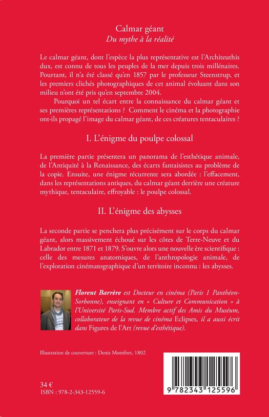 Le calmar géant, dont l'espèce la plus représentative est l'Architeuthis dux, est connu de tous les peuples de la mer depuis trois millénaires. Pourtant, il n'a été classé qu'en 1857 par le professeur Steenstrup, et les premiers clichés photographiques de cet animal évoluant dans son milieu n'ont été pris qu'en septembre 2004. Pourquoi un tel écart entre la connaissance du calmar géant et ses premières réprésentations ? Comment le cinéma et la photographie ont-ils propagé l'image du calmar géant, de ces créatures tentaculaires ?