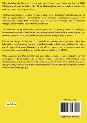 "Une fantaisie du Docteur Ox" est une nouvelle de Jules Verne publiée en 1872. L'histoire se déroule dans la petite ville de Quiquendone, où le mystérieux Docteur Ox arrive avec des intentions secrètes.