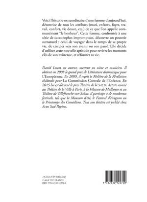 L'histoire extraordinaire d'une femme d'aujourd'hui, détentrice de tous les attributs de la vie bourgeoise (mari, enfants, foyer, travail, confort, vie douce, etc.) que l'on appelle communément "le bonheur". Cette femme, confrontée à une série de catastrophes impromptues, se découvre un pouvoir surnaturel : celui de voyager dans le temps de sa propre vie, de circuler au fil de son histoire, vers son passé, où elle reprend sa place d'enfant, mais aussi vers son avenir, qu'elle peut rejoindre sur le mode d'une avance rapide, c'est-à-dire sans vivre tous les moments qui l'en séparent.