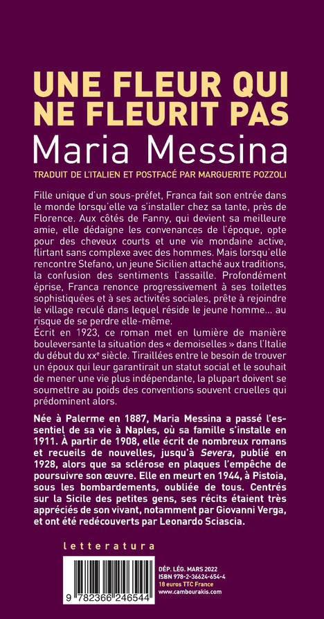 Franca renonce progressivement à ses toilettes sophistiquées et à ses activités sociales, prête à rejoindre le village reculé dans lequel réside le jeune homme... au risque de se perdre elle-même. Écrit en 1923, ce roman met en lumière de manière bouleversante la situation des « demoiselles » dans l'Italie du début du xxe siècle. Tiraillées entre le besoin de trouver un époux qui leur garantirait un statut social et le souhait de mener une vie plus indépendante, la plupart doivent se soumettre au poids des conventions souvent cruelles qui prédominent alors.