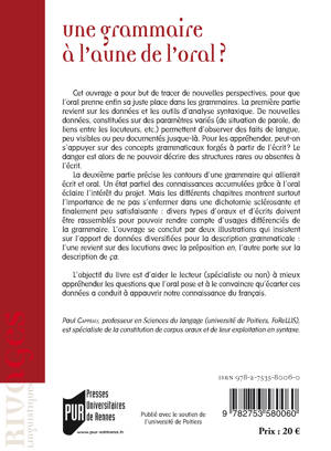 Cet ouvrage a pour but de tracer de nouvelles perspectives, pour que l’oral prenne enfin sa juste place dans les grammaires. De nouvelles données, constituées sur des paramètres variés permettent d’observer des faits de langue, peu visibles ou peu documentés jusque-là. Pour les appréhender, peut-on s’appuyer sur des concepts grammaticaux forgés à partir de l’écrit ? Le danger est alors de ne pouvoir décrire des structures rares ou absentes à l’écrit. L’objectif du livre est d’aider le lecteur (spécialiste ou non) à mieux appréhender les questions que l’oral pose et à le convaincre qu’écarter ces données a conduit à appauvrir notre connaissance du français.