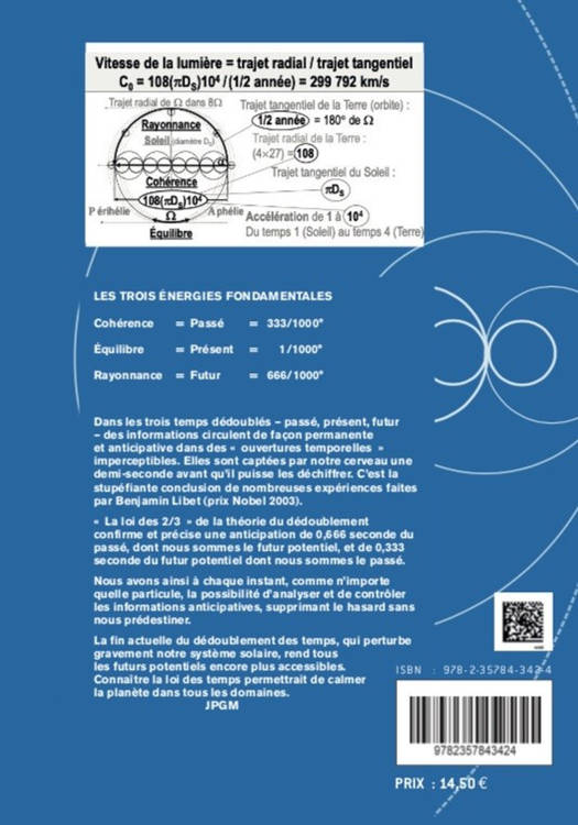 Avec le dédoublement des temps, le hasard n’a pas le temps d’exister ! Comme les particules, nous sommes, sur Terre, les observateurs d’un temps intermédiaire entre des observateurs externes (+) évoluant dans un temps très rapide et des observateurs internes (–) évoluant dans un temps très lent. Ces observateurs «extratemporels» nous font vivre par des échanges d’informations permanents et anticipatifs dans des ouvertures temporelles imperceptibles. Évoluant ainsi entre un passé où la synthèse est instantanée et un futur où l’analyse est sans fin, les observateurs terrestres que nous sommes bénéficient donc d’une anticipation permanente qui supprime le hasard, tout en laissant toujours le temps de modifier les possibilités présentes. Ainsi, nous avons à chaque instant l’impression d’une liberté totale et d’un hasard permanent. Le mouvement universel de dédoublement de l’espace et du temps nous conduit enfin vers le meilleur à condition de ne rien vouloir et de se laisser guider… Ne restons pas dans l’ignorance et penchons-nous un instant sur le pourquoi de notre vie sur terre.