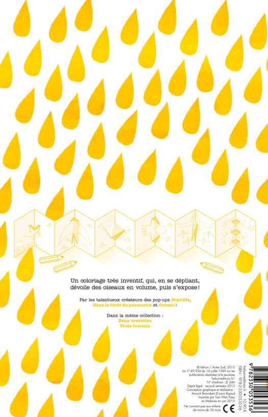 Un coloriage très inventif qui, en se dépliant, dévoile des oiseaux en volumes, puis s'expose !