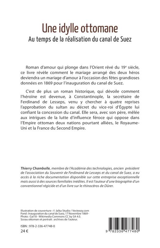 Roman d'amour qui plonge dans l'Orient rêvé du 19e siècle, ce livre révèle comment le mariage arrangé des deux héros deviendra un mariage d'amour à l'occasion des fêtes grandioses données en 1869 pour l'inauguration du canal de Suez. C'est de plus un roman historique, qui dévoile comment l'héroïne est devenue, à Constantinople, la secrétaire de Ferdinand de Lesseps, venu y chercher à quatre reprises l'approbation du sultan au décret du vice-roi d'Égypte lui confiant la concession du canal. Elle sera, avec son père, mêlée aux intrigues de la lutte d'influence féroce qui oppose dans l'Empire ottoman deux nations pourtant alliées, le Royaume-Uni et la France du Second Empire.