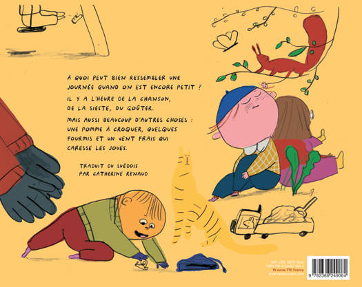 À quoi peut bien ressembler une journée quand on est encore petit ? Il y a l'heure de la chanson, de la sieste, du goûter. Mais aussi beaucoup d'autres choses : une pomme à croquer, quelques fourmis et un vent frais qui caresse les joues.