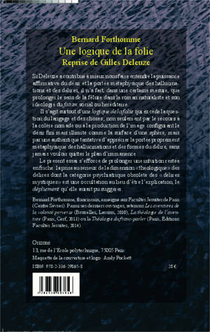 Deleuze a contribué à mieux nous faire entendre la puissance affirmative du désir et la portée métaphysique des hallucinations et délires. Une logique de la folie qui excède la question du langage et des choses... Cet essai prolonge une intuition restée en friche : la prise au sérieux de la dimension " théologique " des délires dont la catégorie psychiatrique obsolète des " délires mystiques " est une occultation au lieu d'être l'explication, le dépliement qu'elle aurait pu suggérer.