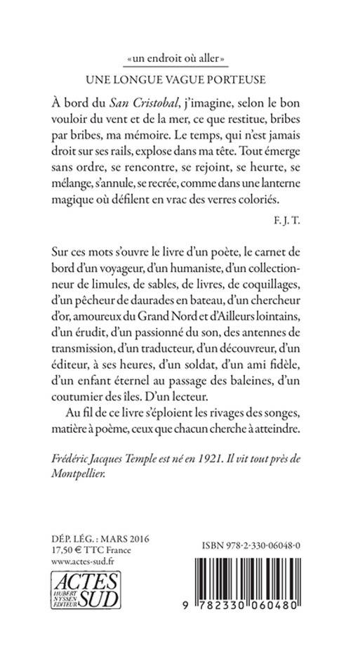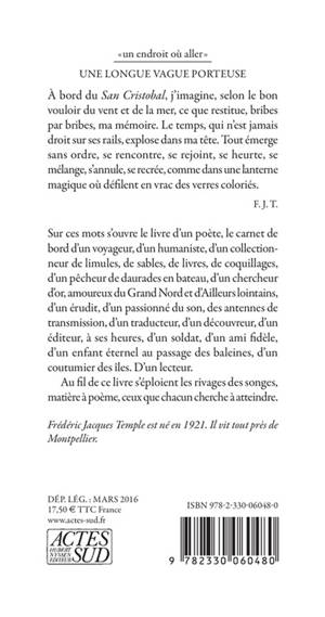 En prélude à ce voyage aux lointains immobiles, Frédéric Jacques Temple écrit : À bord du «San Cristobal», j'imagine, selon le bon vouloir du vent et de la mer ce que restitue, bribe par bribe ma mémoire. Le temps qui n'est jamais droit sur ses rails explose dans ma tête. Tout émerge sans ordre, se rencontre, se rejoint, comme dans une lanterne magique où défilent en vrac des verres coloriés. Je roule sur une longue vague.