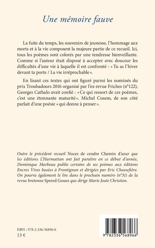 La fuite du temps, les souvenirs de jeunesse, l'hommage aux morts et à la vie composent la majeure partie de ce recueil. Ici, tous les poèmes sont colorés par une tendresse bienveillante. Comme si l'auteur était disposé à accepter avec douceur les difficultés d'une vie à laquelle il est confronté Tu as l'hiver devant ta porte / La vie irréprochable . En lisant ces textes qui ont figuré parmi les nominés du prix Troubadours 2016 organisé par l'ex-revue Friches (n°122), Georges Cathalo avait confié Ce qui ressort de ces poèmes, c'est une étonnante maturité . Michel Cosem, de son côté parlait d'une poésie qui donne à penser .