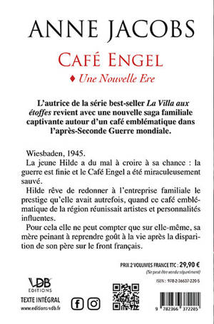 Wiesbaden, 1945. La jeune Hilde a du mal à croire à sa chance : la guerre est finie et le Café Engel a été miraculeusement sauvé. Hilde rêve de redonner à l’entreprise familiale le prestige qu’elle avait autrefois, quand ce café emblématique de la région réunissait artistes et personnalités influentes. Pour cela elle ne peut compter que sur elle-même, sa mère peinant à reprendre goût à la vie après la disparition de son père sur le front français. Grâce au marché noir florissant, elle parvient à rouvrir le café, et les clients affluent. Des soldats américains comme des Fräuleins, ceux qui sont parvenus à garder leurs possessions pendant la guerre comme ceux qui ont tout perdu. Et contre toute attente, le père de Hilde est libéré et rentre chez lui. Mais, à peine retrouvée, la joie est de courte durée. Maintenant que son père est rentré, Hilde est reléguée à un rôle de serveuse. Et, lorsqu’une belle jeune femme réfugiée de Prusse orientale se présente au café comme sa cousine Luisa, c’est le cœur de tous les villageois qu’elle va conquérir. Y compris celui de l’amour de jeunesse de Hilde, le violoniste Fritz Bogner, revenu lui aussi d’un camp de prisonniers. Les deux rivales ont pourtant bien plus en commun qu’elles ne l’imaginent…