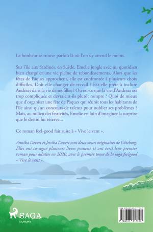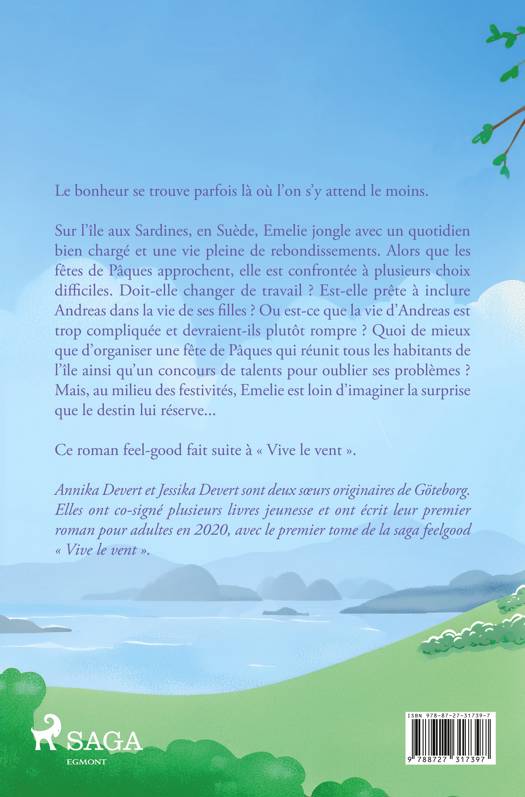 Le bonheur se trouve parfois là où l'on s'y attend le moins. Sur l'île aux Sardines, en Suède, Emelie jongle avec un quotidien bien chargé et une vie pleine de rebondissements. Alors que les fêtes de Pâques approchent, elle est confrontée à plusieurs choix difficiles. Doit-elle changer de travail ? Est-elle prête à inclure Andreas dans la vie de ses filles ? Ou est-ce que la vie d'Andreas est trop compliquée et devraient-ils plutôt rompre ? Quoi de mieux que d'organiser une fête de Pâques qui réunit tous les habitants de l'île ainsi qu'un concours de talents pour oublier ses problèmes ? Mais, au milieu des festivités, Emelie est loin d'imaginer la surprise que le destin lui réserve... Ce roman feel-good fait suite à « Vive le vent ».