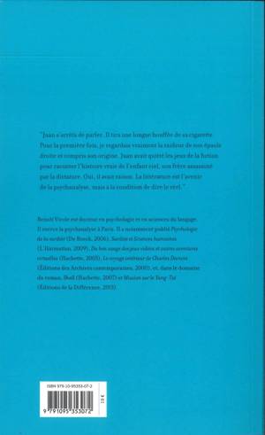 "Juan s'arrêta de parler. Il tira une longue bouffée de sa cigarette. Pour la première fois, je regardais vraiment la raideur de son épaule droite et compris son origine. Juan avait quitté les jeux de la fiction pour raconter l'histoire vraie de l'enfant ciel, son frère assassiné par la dictature. Oui, il avait raison. La littérature est l'avenir de la psychanalyse mais à condition de dire le réel."
