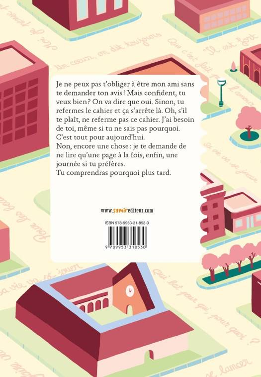 Je ne peux pas t'obliger à être mon ami sans te demander tonavis! Mais confident, tu veux bien? On va dire que oui. Sinon, tu refermes lecahier et ça s'arrête là. Oh, s'il te plaît, ne referme pas ce cahier. J'aibesoin de toi, même si tu ne sais pas pourquoi. C'est tout pour aujourd'hui.Non, encore une chose: je te demande de ne lire qu'une page à la fois, enfin,une journée si tu préfères. Tu comprendras pourquoi plus tard.