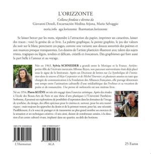 Se laisser porter par la proposition poétique des rimes et des images, répondre par une sensation de formes, de traits et de matières, comme un écho aux poèmes. Y ajouter le plaisir d’un bel objet d’édition : jouer avec la typographie, la mise en page, le choix du noir et blanc. Certaines de ces images sont des dessins au crayon graphite ou au conté, souvent pondérés par le noir du fusain. D’autres sont le résultat de l’encre et du papier par le monotype. Beaucoup de ces tracés sont terminés à la palette graphique, la maîtrise de la valeur et des transparences porte l’image à être en consonance avec le poème. L’histoire de ce livre est celle d’un chemin d’amitiés entre un éditeur, un dessinateur et une autrice de poésie, comme une nécessité de découvrir la sonorité du vers, à l’horizon des rimes… Se laisser bercer par les mots, répondre à l’attraction du papier, imprimer ses caractères, laisser des traces ; voici la genèse de ce livre. La palette graphique, la pointe graphite, le jeu des valeurs du noir sur le blanc ponctuent ces pages, comme une variante aux douces sonorités des poèmes et aux nuances presque transparentes. Les dessins de l’artiste plasticien illustrent avec talent des sujets tristes, tragiques ou légers, tendres et délicats, créatifs et évocateurs. Des graphismes qui font aussi la part belle à l’amour et au voyage.