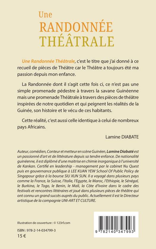 Une Randonnée Théâtrale, c'est le titre que j'ai donné à ce recueil de pièces de Théâtre car le Théâtre a toujours été ma passion depuis mon enfance. La Randonnée dont il s'agit cette fois ci, ce n'est pas une simple promenade pédestre à travers la savane Guinéenne mais une promenade Théâtrale à travers des pièces de théâtre inspirées de notre quotidien et qui peignent les réalités de la Guinée, son histoire et le vécu de ces habitants. Cette réalité, c'est aussi celle identique à celui de nombreux pays Africains.