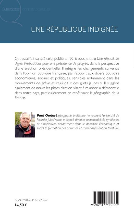 Cet ouvrage fait suite à une réflexion sur la « République digne », dans la perspective d'une élection présidentielle. Il intègre les changements survenus dans l'opinion publique française depuis 2016, par rapport aux divers pouvoirs économiques, sociaux et politiques, sensibles notamment dans les mouvements de grève et celui dit « des gilets jaunes ». Il suggère également de nouvelles pistes d'action visant à relancer la démocratie dans notre pays, particulièrement en rebâtissant la géographie de la France.