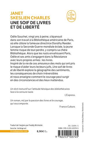 Odile Souchet, vingt ans à peine, s’épanouit dans son travail à la Bibliothèque américaine de Paris, où elle côtoie la fameuse directrice Dorothy Reeder. Lorsque la Seconde Guerre mondiale éclate, la jeune femme risque de tout perdre, y compris sa chère Bibliothèque. Alors que les nazis envahissent Paris, Odile et ses amis s’engagent dans la Résistance avec leurs propres armes : les livres.