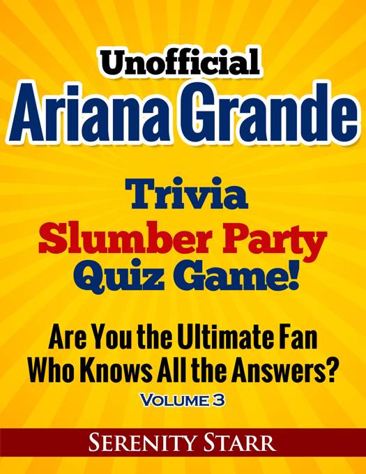 Volume 3, with 50 more questions to Test your Ariana Grande IQ with your friends at your next Slumber Party…One of you is surely the Ultimate Ariana Grande Fan who knows the answers to all 50 questions in each volume, 10 questions per Round.