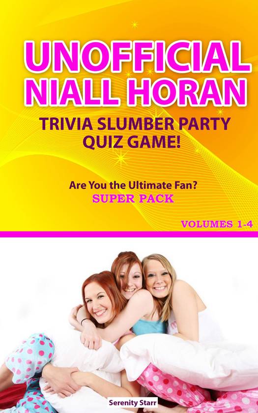Super Pack with 200 questions from Volumes 1-4 to Test your Niall Horan IQ with your friends at your next Slumber Party…One of you is surely the Ultimate Niall Horan Fan who knows the answers to all 50 questions in each volume, 10 questions per Round.